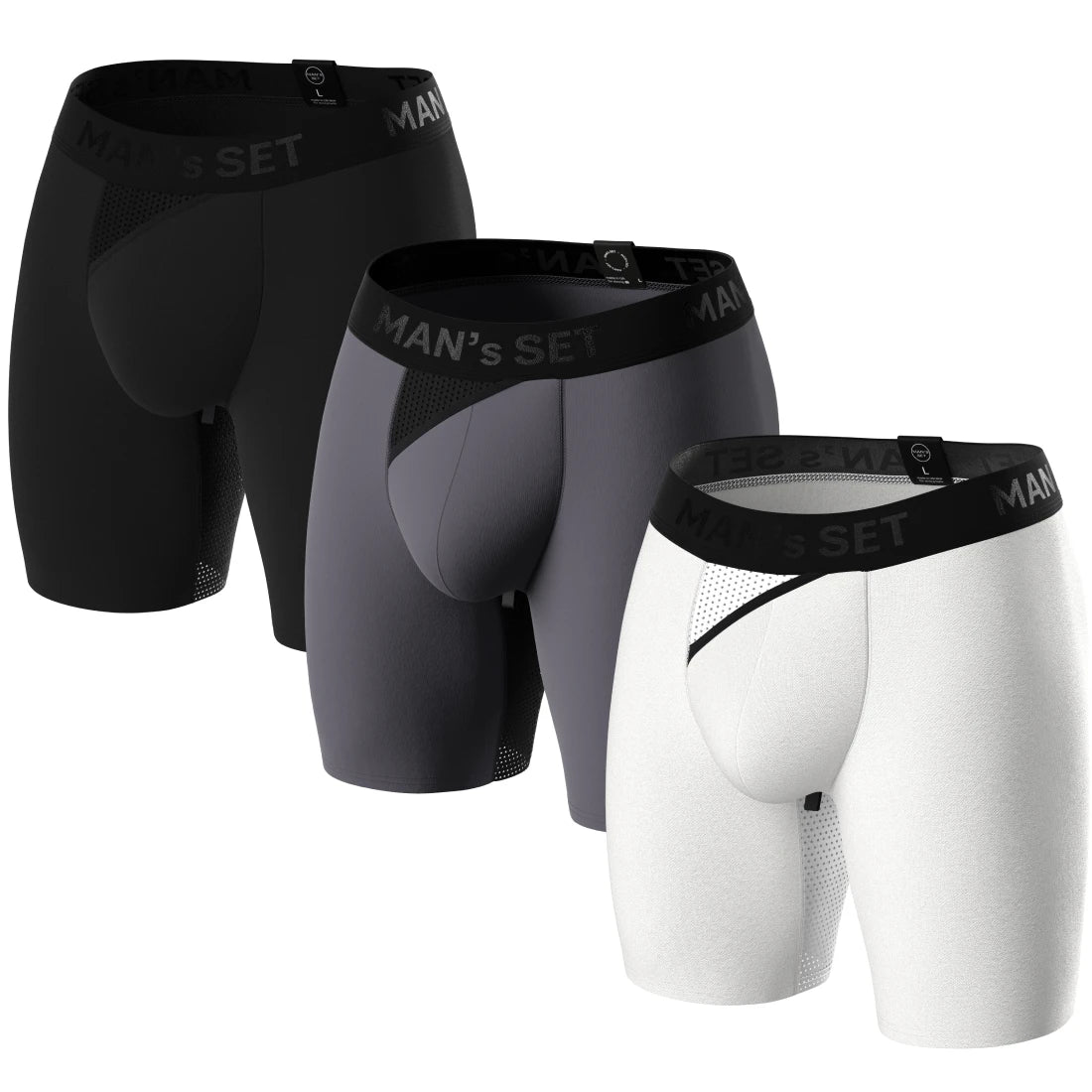AirFlow Boxer Briefs 7.6" 3-Pack, Black/Graphite/White