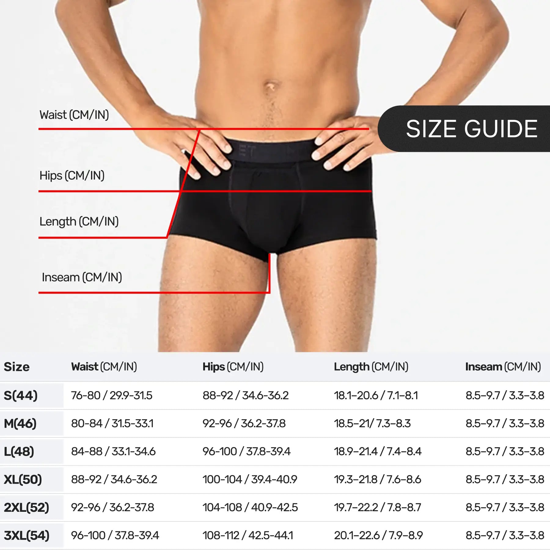 | XL (50) | 88–92 34.6–36.2 | 100–104 39.4–40.9 | 19.3–21.8 7.6–8.6 | 8.5–9.7 3.3–3.8 |